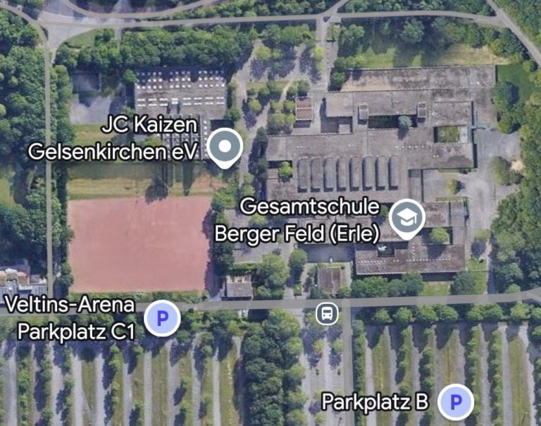 Der JC Kaizen Gelsenkirchen trainiert in der Sporthalle 4, der Gesamtschule Berger Feld. Der Zugang erfolgt über das Schulgeläne. Parkplätze sind ausreichend vorhanden.